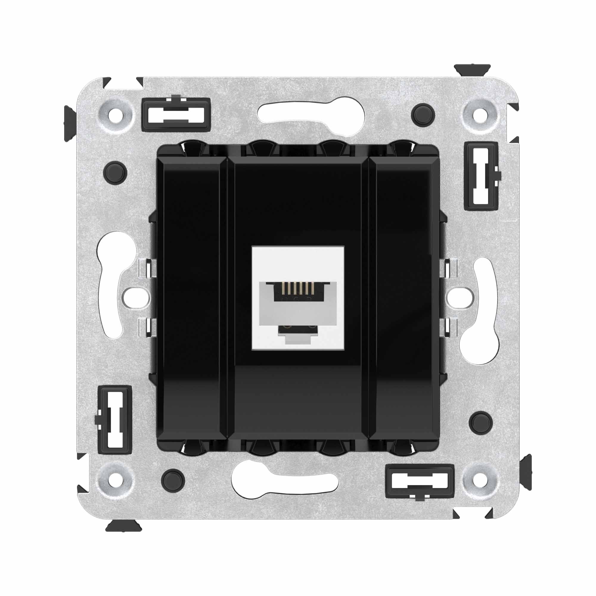 Телефонная розетка RJ-12 без шторки используется для коммутации линий телефонной связи в патч-панелях или для связи телефонных аппаратов с розеткой. Предназначена для скрытого монтажа в стену, поставляется в комплекте с суппортом. Материал – металл, термопласт.