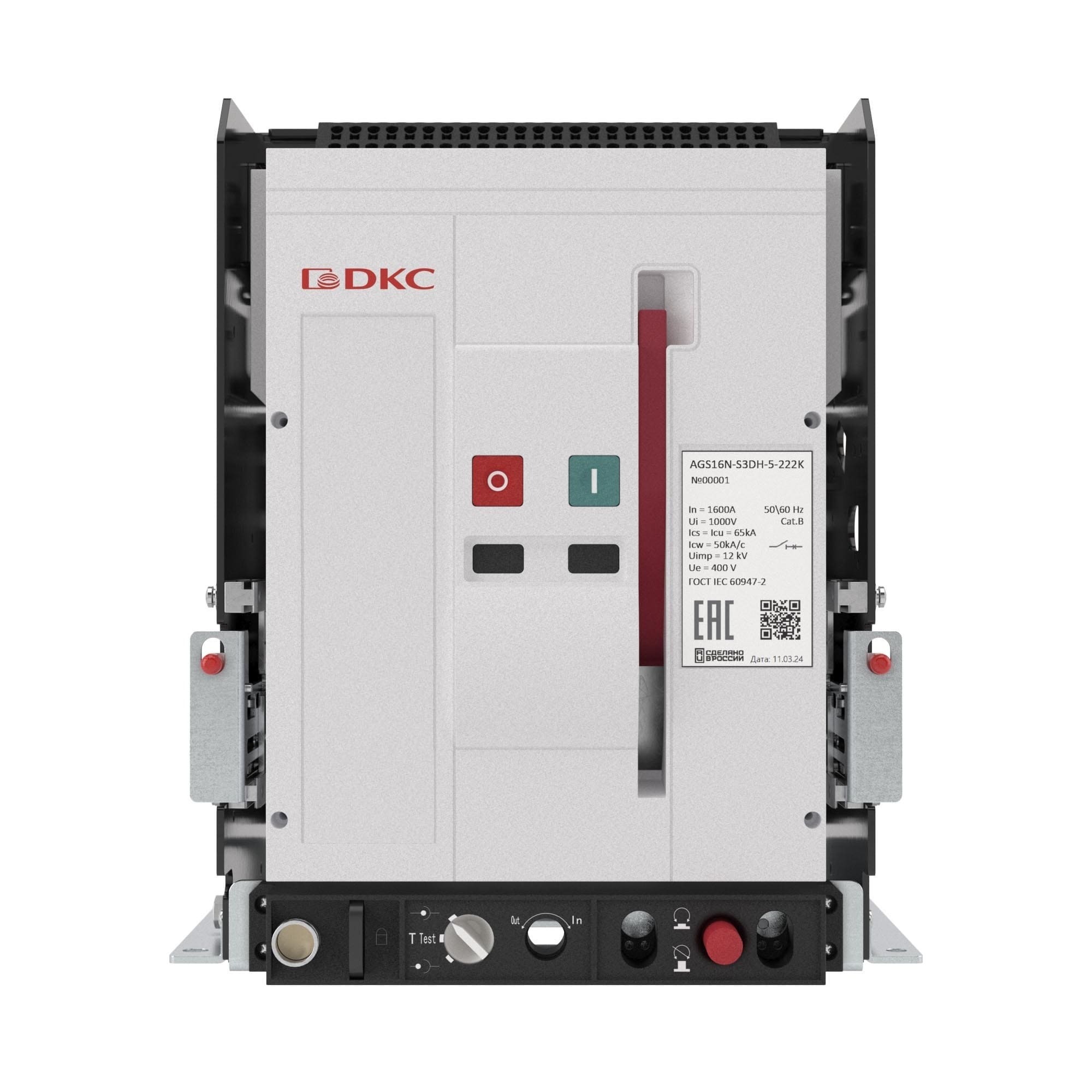 Выключатель нагрузки YON AGS10N-S3DH-0-222K, 65 кА, типоразмер S, выкатной, управление 220 В AC, горизонтальное подключение (Штука 1 шт)