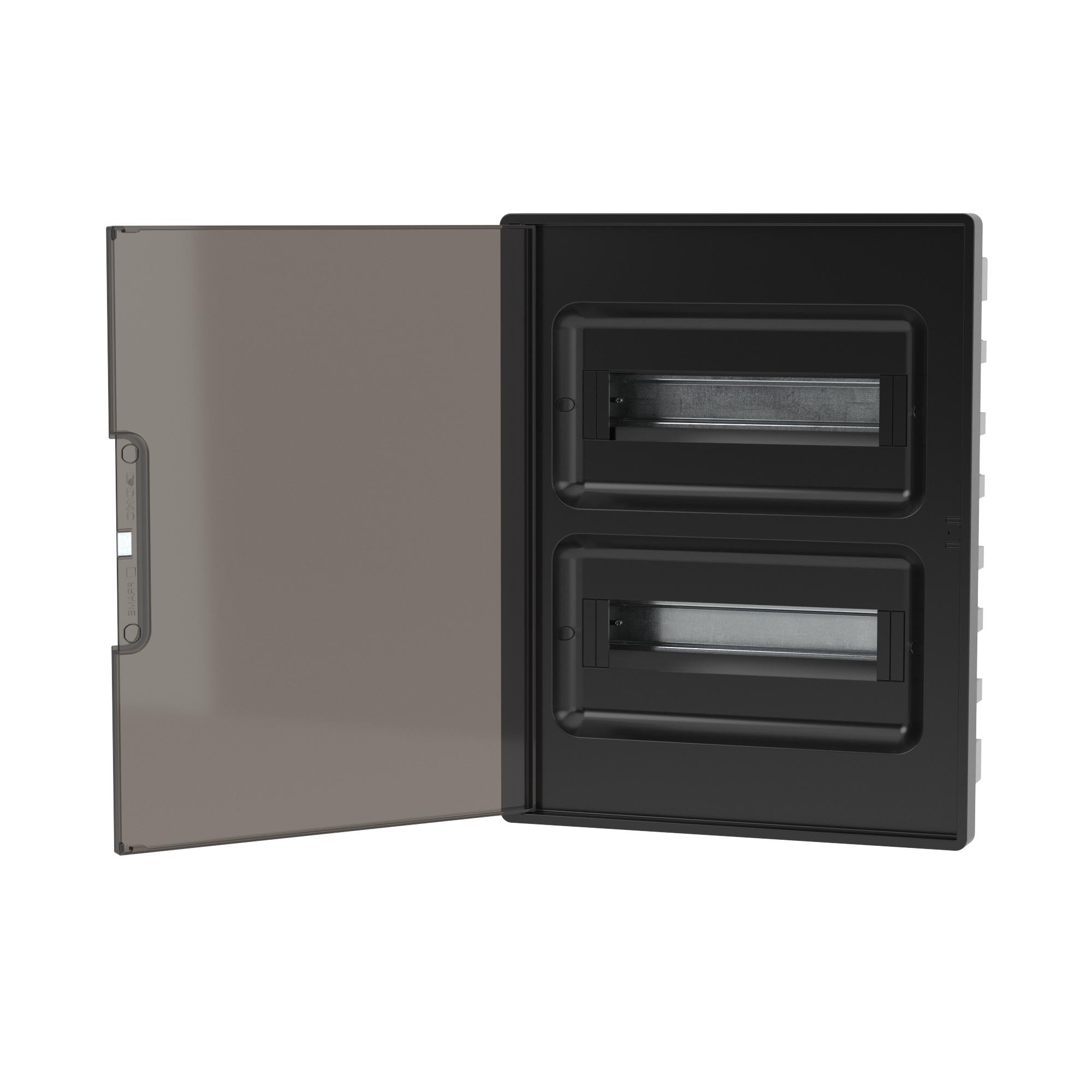 Щиток 24 мод встраиваемый для полых стен FRAME, черный, с тонированнойдверцей, с 4 шинами PEN (2шт на 8 отв. и 2шт на 6 отв.) (Штука 1 шт)