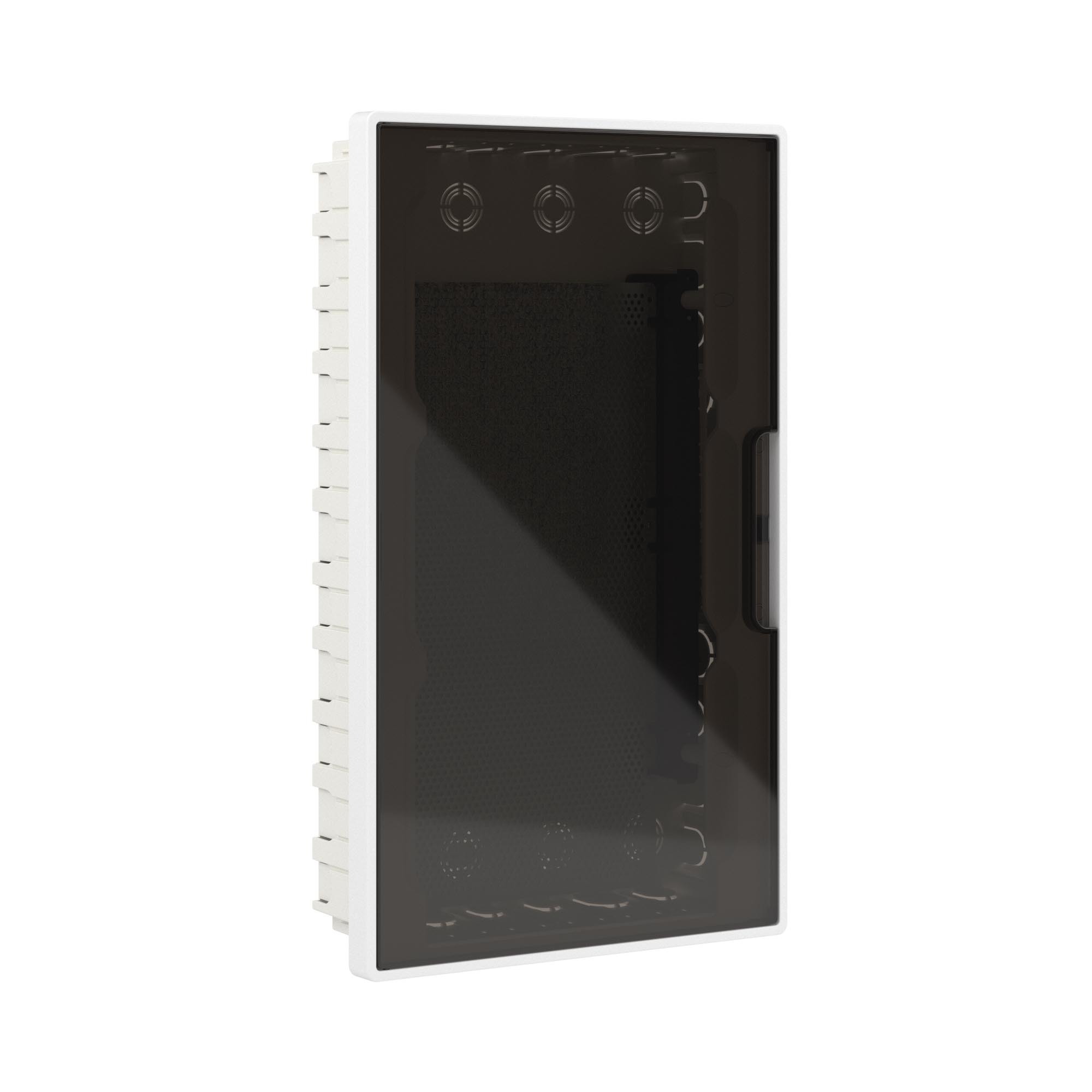 Щиток 36 мод встраиваемый слаботочный FRAME, белый, с тонированной дверцей, с монтажной платой, в комплекте с 2 розетками Viva (арт. 45005) и 2 коробками PDD (арт. 10033) (Штука 1 шт)