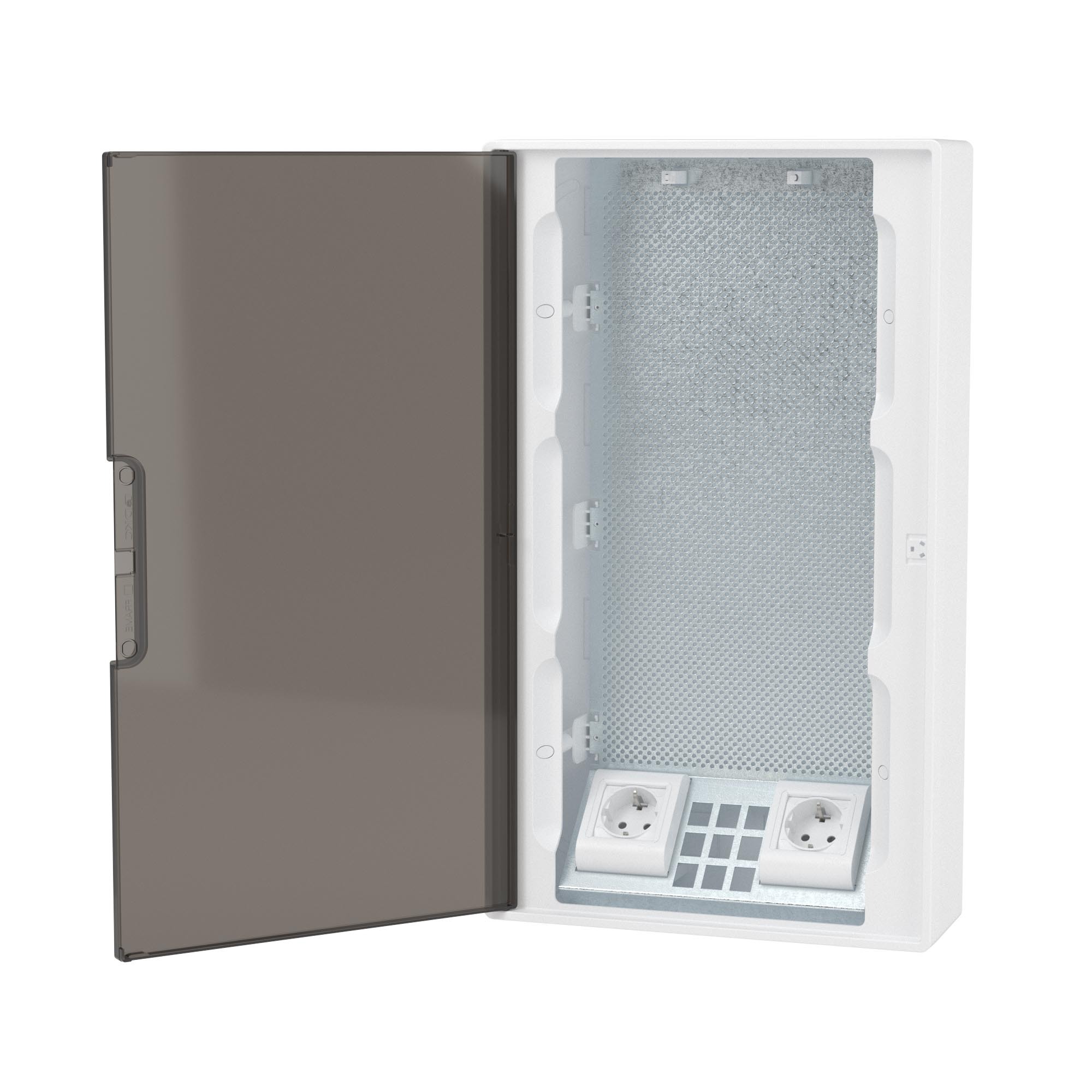 Щиток 36 мод настенный слаботочный FRAME, белый, с тонированной дверцей,с монтажной платой, в комплекте с 2 розетками Viva (арт. 45005) и 2коробками PDD (арт. 10033) (Штука 1 шт)