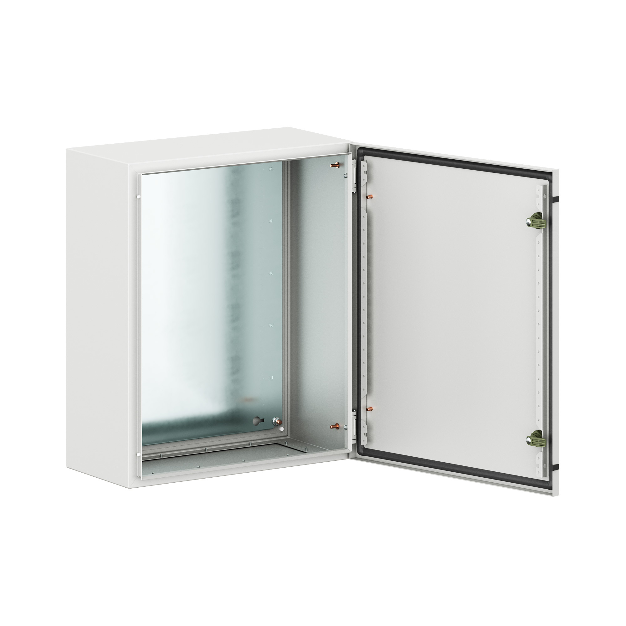 Навесные корпуса ST Outdoor предназначены для систем автоматизации и распределения электроэнергии, эксплуатирующихся вне помещений и под открытым небом. Корпус, дверь, фланец изготавливаются из стали толщиной 1,2 мм с грунтовкой, наносимой методом катафореза, и атмосферостойким порошковым покрытием, цвет RAL7035. Литой уплотнитель двери и фланца - вспененный силикон. Монтажная плата - из оцинкованной стали толщиной 1,8 мм. Степень защиты IP66, ударопрочность IK10, сейсмостойкость 9 баллов по шкале MSK-64, климатическое исполнение УХЛ1, ОМ1, Т1, группа горючести Г1. Диапазон температур эксплуатации от -70 до +90 °С. Комплект поставки: корпус, дверь реверсивная, монтажная плата с двунаправленной разметкой, дверные рейки, поворотный замок 2 шт., сплошной фланец для ввода кабеля 1 шт., комплект заземления без проводов, монтажные аксессуары. Габариты 600х500х900 (ВхШхГ) мм.